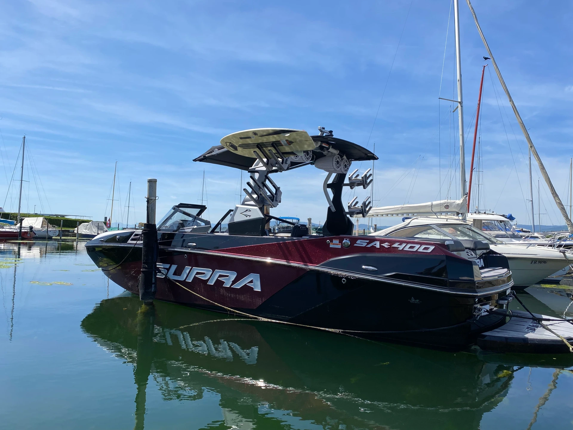 Zum Start der Sasison haben wir von unserem Bootsparter, der Moomba Supra AG in Muntelier ein wunderschönes 2023 Sura SA 400 in den Platz gestellt bekommen, was uns sehr freut. Bereits in den vergangenen Saisons durften wir von der Top-Qualität und dem erstklassigen Service vor Ort profitieren. Durch diese bewährte Zusammenarbeit und die Expertise der Moomba Supra AG steht uns in dieser Saison ein absolutes Traumboot zur Verfügung.